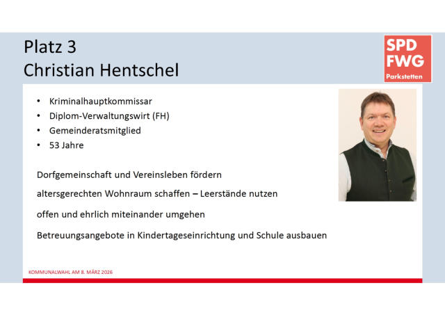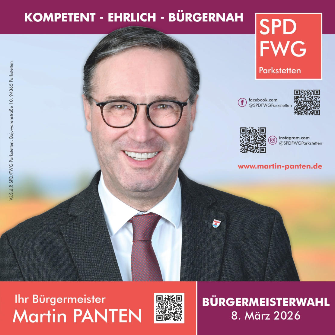 Martin Panten wurde am 8. März 2026 für die SPD/FWG erneut zum 1. Bürgermeister gewählt.
